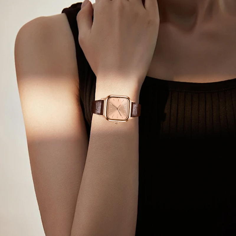 Classic Minimalist Square Watch Custom Logo Leather Strap 3ATM Water Resistant Japan Movement Quartz Women Watches NO LOGO
