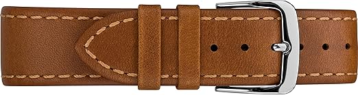 - Adjustable tan 20mm genuine leather strap fits up to 8-inch wrist circumference